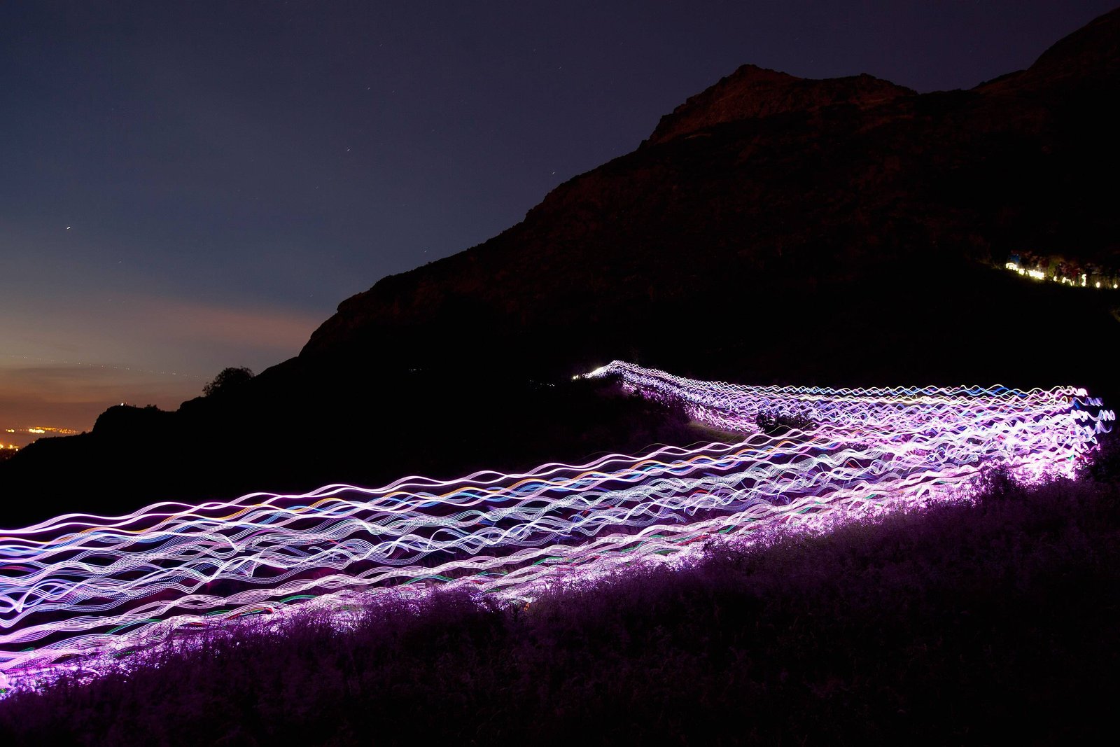 Runners dressed in light emitting suits and holding light sticks make their way up Arthur’s Seat as part of a mass participation public art piece called ‘Speed of Light’ in Edinburgh, Scotland. Source imgur.com